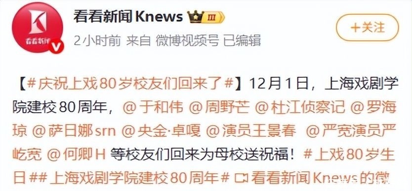 3. 没想到一场上海戏剧学院建校80周年的庆典活动,竟引来众多明星校友纷纷返校,瞬间点燃全网热度。